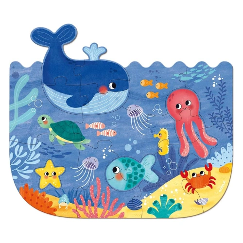 Красивите илюстрации на кит, костенурка, октопод, рак и други рибки, ще стимулират малчуганите да развият своята концентрация и въображение. Пъзелът се предлага в красива кутия, която е подходяща за подарък, както за момчета, така и за момичета.