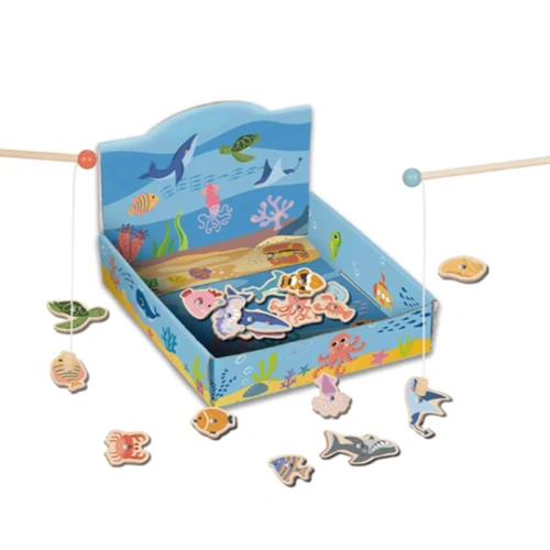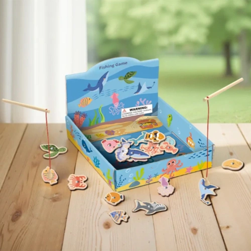 Потопете се в света на морските приключения с тази дървена Montessori игра Риболов с две въдици, създадена специално за най-малките изследователи!