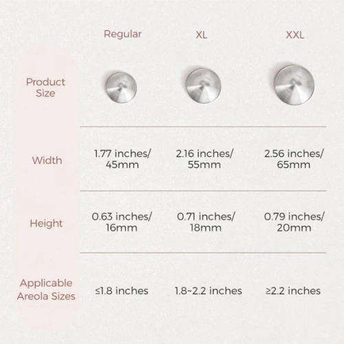 Важно: Ако вече изпитвате болка или чувствителност в зоната на зърната или ареолите, се препоръчва да изберете един размер по-голям от стандартния спрямо размера на ареолата.