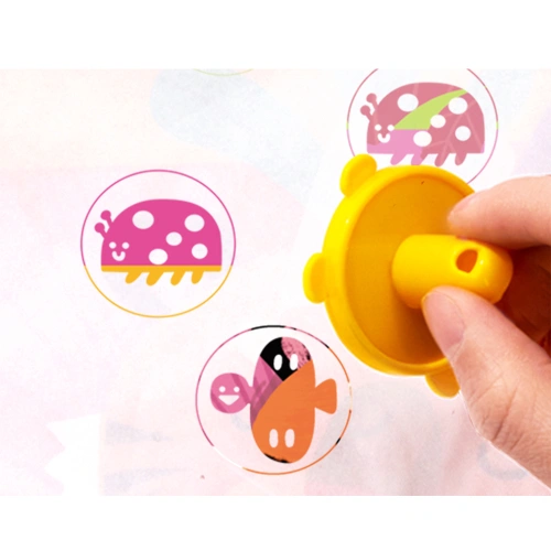 комплектът гарантира безопасно и чисто забавление, тъй като е без мастило, нетоксичен и екологичен, а водоустойчивият гръб позволява игра върху пода или масата без никакви петна.