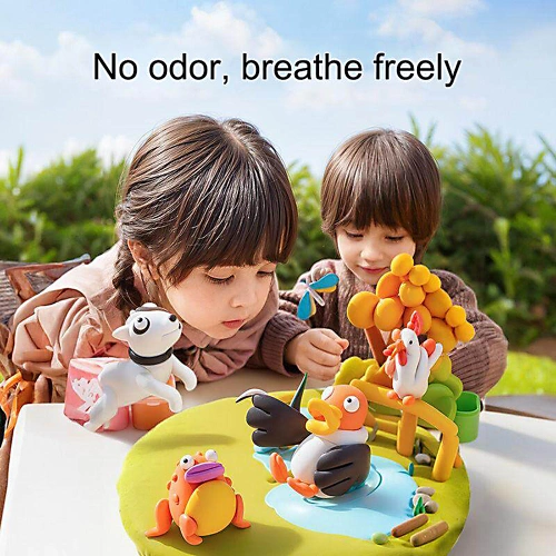Моделинът е мек, еластичен и лесен за моделиране, не полепва по ръцете и не оставя петна. Изработен е от безопасни, нетоксични съставки, което го прави напълно подходящ за деца над 3 години. Цветовете могат да се смесват, за да се получават нови нюанси – чудесен начин децата да експериментират и да развиват своето творческо мислене и цветоусещане.