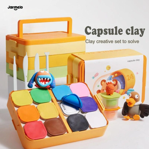 JA97083 Jarmelo Комплект моделини с инструменти в кутия – 12 цвята е чудесен избор както за индивидуална игра у дома, така и за групови занимания в детската градина или арт ателиета. Перфектен подарък за всяко дете, което обича да твори с ръце!