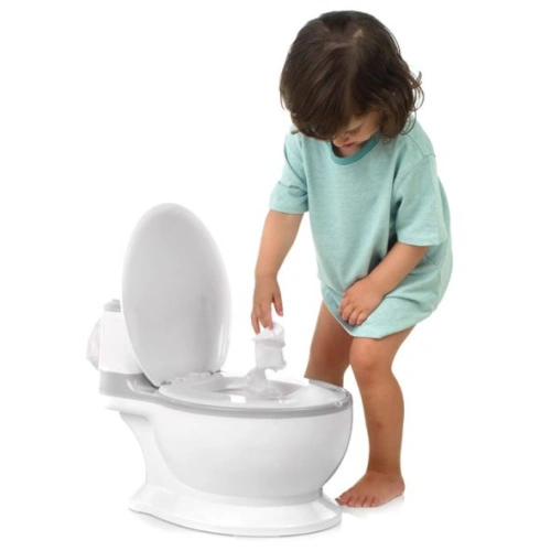 С дизайн, който имитира истинска тоалетна, това гърненце прави приучването към тоалетна забавно и безопасно преживяване. Включва капак с панта, звук имитиращ пускане на вода и неплъзгаща се основа за повече сигурност. Разполага и с отделение в резервоара за мокри кърпички или тоалетна хартия, както и с подвижна купичка, устойчива на разпръскване, която улеснява почистването.
