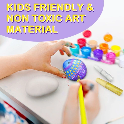 Комплектът насърчава творческото мислене, концентрацията, фината моторика и самоизразяването. Освен това готовите камъчета могат да се използват като украса, подарък или част от тематични игри.