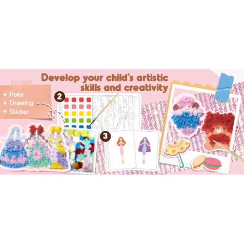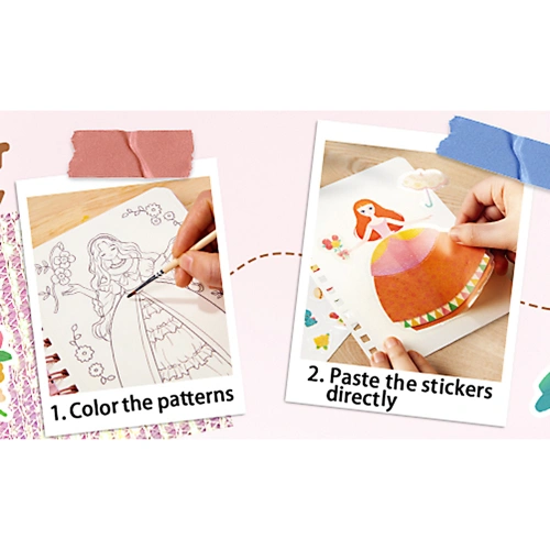 Създай приказни визии за феи и принцеси с помощта на акварелни бои, шаблони, стикери и текстилни елементи.