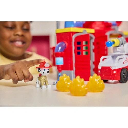Пригответе се за вълнуващи спасителни мисии с Fire Rescue Command Center – впечатляващ комплект с височина 38 см., светлинни и звукови ефекти, който вдъхновява децата да играят и да пресъздават любимите си сцени от PAW Patrol.