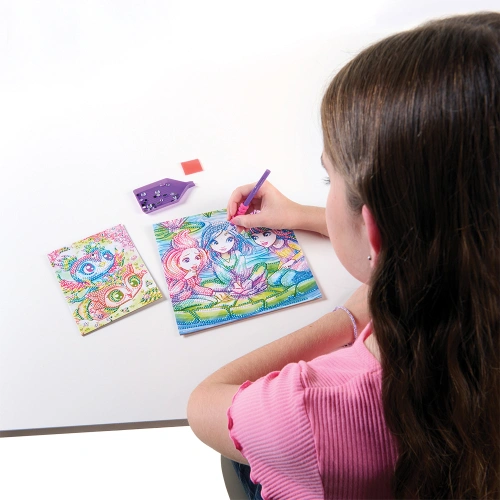 С помощта на специалния апликатор и восъчното блокче, децата нанасят микро-диаманти върху лепкавите шаблони, като следват номерацията по цветове. Това е не само забавно, но и изключително удовлетворяващо занимание, което развива концентрацията, фината моторика и търпението.