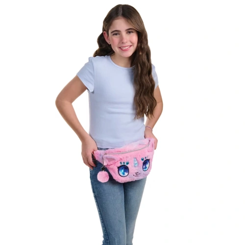 Детска розова пухкава чантичка за кръст Стела PAT69081