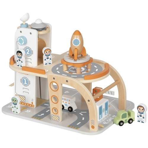 Този мултифункционален дървен паркинг с космическа тематика предлага безкрайни възможности за игра, изследване и забавление.