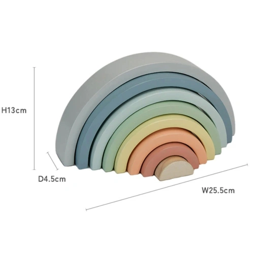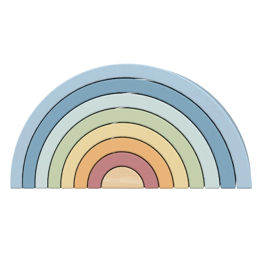 Дървената дъга в пастелни цветове, Монтесори от Tooky Toy е чудесен избор за всяко дете още от 18-месечна възраст. Съставена от 7 красиво оцветени дървени елемента, играчката вдъхновява за творчество и експерименти – от класическа дъга до мостове, тунели и фантастични конструкции.