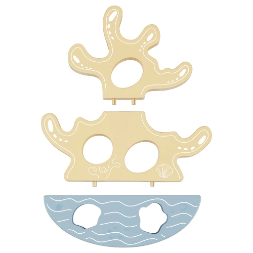 Създадена от екологично чисти и безопасни материали – хвойново дърво, MDF и ABS пластмаса – играчката стимулира фината моторика, координацията око-ръка, логическото мислене и въображението на детето.