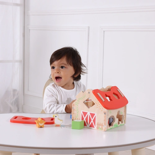 „Моите приятели от фермата“ е цветна дървена къщичка-сортер, която съчетава забавление и ранно обучение в едно. Създадена за деца над 18 месеца, тази играчка стимулира развитието на логическо мислене, координация и сръчност, докато детето открива формите и животните.