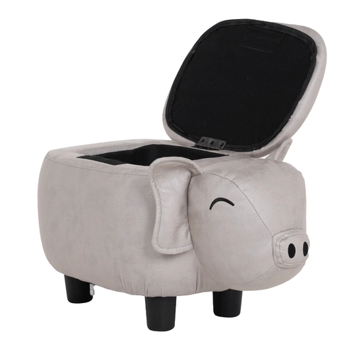 Детската табуретка с форма на прасенце е очарователно допълнение към стаята на вашето мъниче. Тя грабва сърцата с веселата си муцунка, заоблени ушички и мека, приятна на допир дамаска. Под седалката се крие практична ракла - прекрасно място за съхранение на любими играчки и малки тайни съкровища.