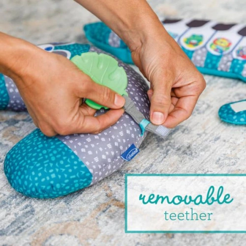 Дизайн: възглавницата поддържа бебето, когато играе по корем, и насърчава сензорното изследване и развитието на грубата и тактилна моторика, както и пълзенето