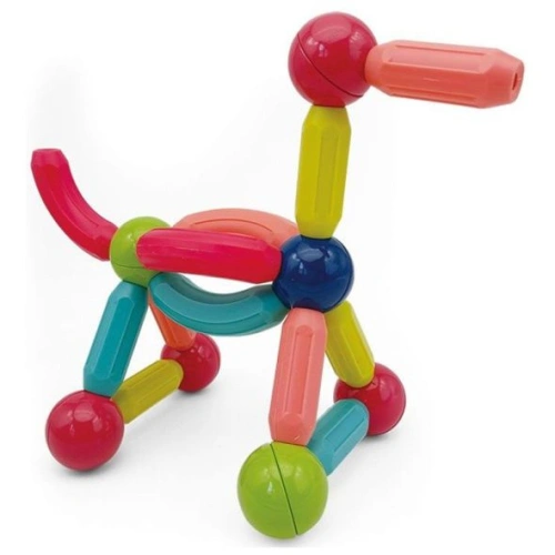 Магнитният конструктор дава свобода на детското въображение и насърчава творческата игра. Големите магнитни фигури се захващат здраво една за друга, което позволява на детето лесно и уверено да реализира своите идеи и конструкции. Здравият захват, както и красивите цветове и форми, привличат детското внимание и превръщат играта в забавна, интересна и разнообразна дейност.