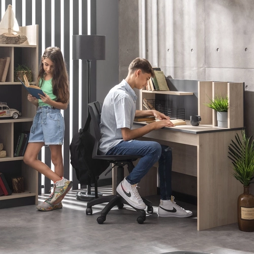 Надстройката TORINO е идеалното допълнение към работното място, което помага за лесното организиране на учебните помагала и личните вещи. Дизайнът включва практичен хоризонтален рафт и вертикални отделения, които са удобни за подреждане на книги, тетрадки и декоративни аксесоари.