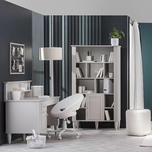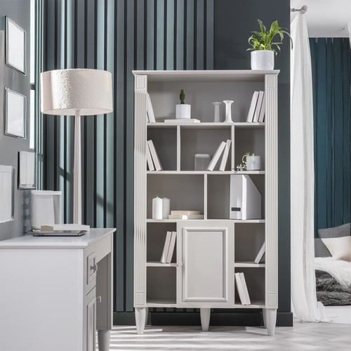 Етажерка EFFIE предлага елегантно решение за организация на книги и декорация, съчетаващо класически дизайн с висока функционалност. Моделът разполага с отворени пространства и затворен шкаф със система за плавно затваряне, която осигурява тиха и безопасна употреба. Изработена от първокачествени материали, тя гарантира здравина и дълготрайност, превръщайки се в стилен акцент в интериора.