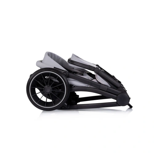 Количката е изработена от лека алуминиева рамка, която се сгъва компактно и разполага с дръжка за пренасяне. Всички колела са от висококачествен PU материал с шумоизолация, оборудвани със система за амортизиране и бързо освобождаване. Задните колела имат свързана спирачка за допълнителна сигурност. Регулируемата дръжка е покрита с еко кожа, а големият кош за съхранение предлага достатъчно място за всички необходими принадлежности.