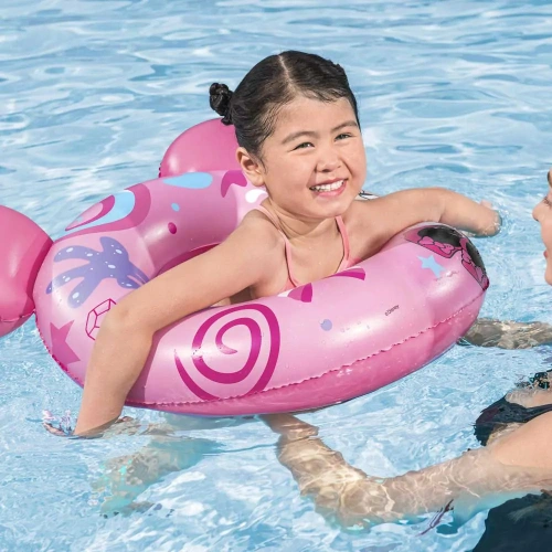 С пояса Disney Minnie Mouse можеш да плуваш с любимата си героиня! Идеален за деца на възраст 3-6 години, които се нуждаят от малко подкрепа във водата. Този пояс е също лесен за надуване, изпускане и съхранение. С Мини Маус на борда, ще изживееш идеалното лято.