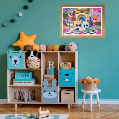 Комплектът включва два пъзела, всеки с по 20 едри и лесни за подреждане части, специално създадени за малки детски ръчички. Реденето на пъзелите подпомага развитието на логическото мислене, концентрацията и фината моторика, като същевременно насърчава въображението и самостоятелната игра. Цветните и весели илюстрации с героите от Super Kitties правят заниманието още по-приятно.