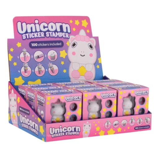 Добави щипка магия към времето за игра с печата за стикери с еднорог! Тази очарователна играчка има забавен дизайн с еднорог и идва със 100 цветни стикера на тема еднорози - идеални за украса на тетрадки, картички, ръчни проекти и още много.