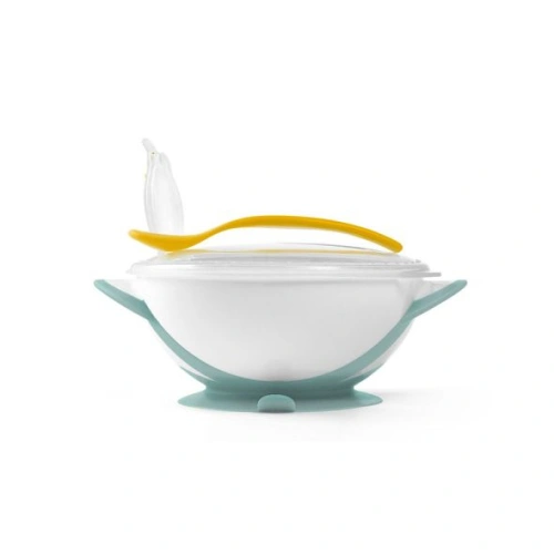 Комплект бебешка купа с капак и лъжичка бяло/жълто PAT70951