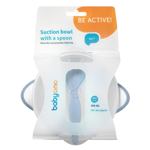 Комплект бебешка синя купа с капак и лъжичка Suction Bowl