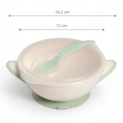 Комплект зелена бебешка купа с капак и лъжичка Suction Bowl