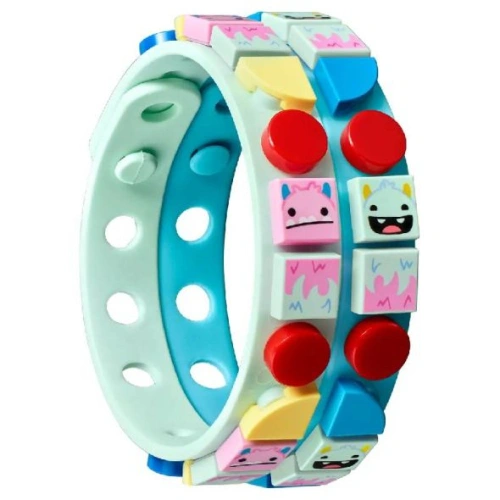 Подарете на малките любители на чудовища и ръчно творчество комплекта LEGO® DOTS Чудовищни гривни 41923, подходящ за деца на 6+ години. Този креативен комплект включва две регулируеми, гъвкави ленти в ментово и синьо, които пасват на всяка китка, както и 32 цветни плочки с чудовищни мотиви. Децата могат да създават уникални дизайни, съобразени с тяхното настроение или стил.