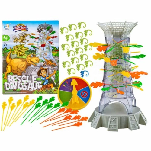 Спаси динозавъра, без да го събориш! Rescue Dinosaur е забавна настолна игра за 2–4 играчи, която развива фината моторика, логическото мислене и търпението. Играчите се редуват да изтеглят цветни пръчки от кулата, без да позволят на динозавъра да падне – всяко движение е от значение!