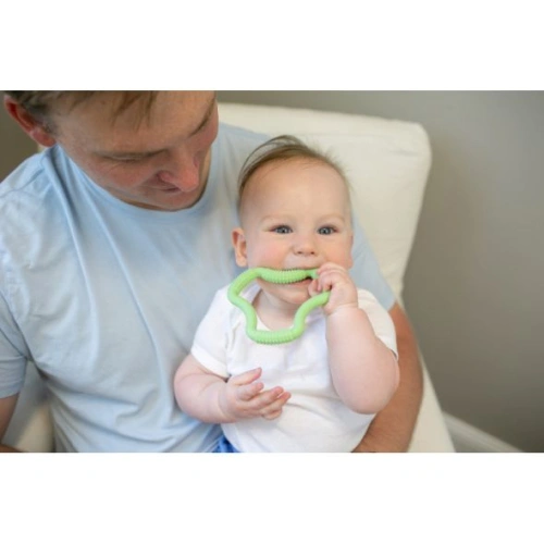 Създадена от детски стоматолог, тази ергономична гризалка е идеална за изследване с езика и подпомага развитието на речта. А-образният дизайн улеснява хващането от малки ръчички, а ярките цветове задържат вниманието на бебето.