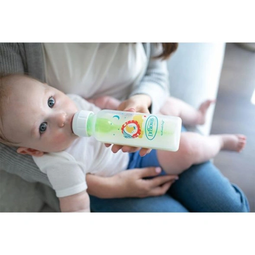 Шишето осигурява хранене без вакуум, което е най-близко до кърменето, а силиконовите биберони Dr. Brown’s® осигуряват постоянен поток, така че бебето да може да се храни със собствено темпо. Формата на биберона, наподобяваща гърдата, насърчава правилното захващане за по-естествено усещане при хранене с шише и улесняване на прехода от гърда към шише и обратно.