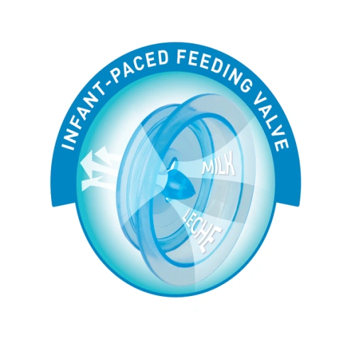 Захранващият вентил на Dr. Brown’s се поставя в който и да е размер стандартен силиконов биберон, за да пресъздаде налягането в зърното.