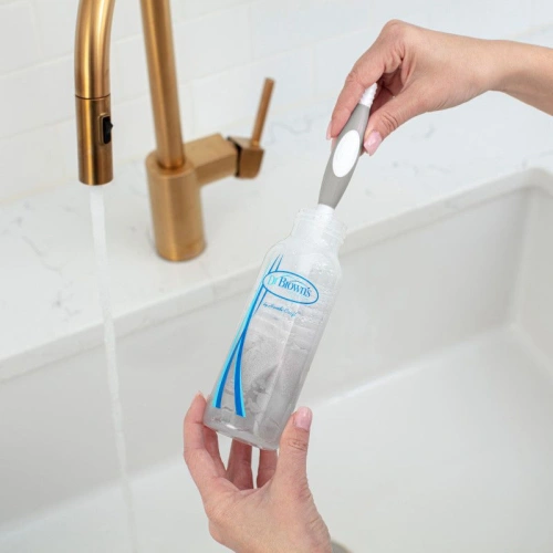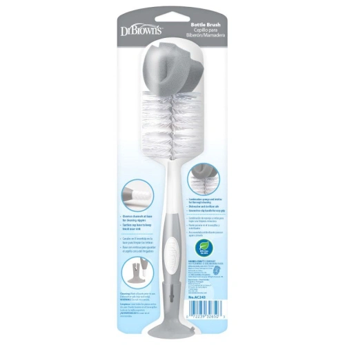 Почистването на бебешки шишета никога не е било по-лесно** с четката за шишета на Dr. Brown’s. Проектирана да пасва на всички шишета на Dr. Brown’s и на повечето други марки, тази почистваща четка комбинира гъба и влакна за цялостно и ефективно почистване на бебешки шишета, чаши с накрайник и други аксесоари.