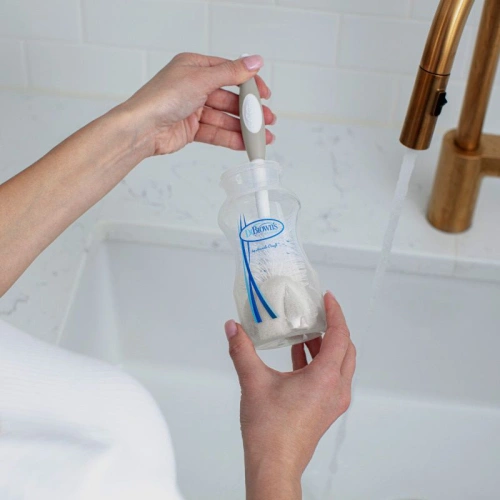 Здравата четка за бебешки шишета е съвместима с всички бебешки шишета Dr. Brown's и повечето други марки, както с тясно, така и с широко гърло.