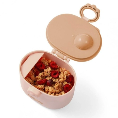 Компактна, практична и винаги под ръка – тази кутия за сухо мляко улеснява храненето на бебето навсякъде и по всяко време. С херметично затваряне за запазване на свежестта, отделение за лъжичката и удобна силиконова дръжка за носене. Идеална за пътуване, разходка или употреба у дома.
