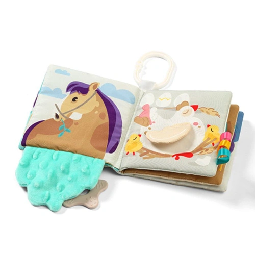 Меката и цветна книжка е отговорът на когнитивните нужди на вашето бебе. Играчката ще придружава вашето мъниче през ранните му етапи на развитие, стимулирайки растежа на неговите зрителни, слухови и двигателни координационни умения.