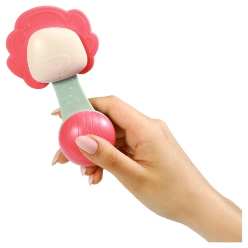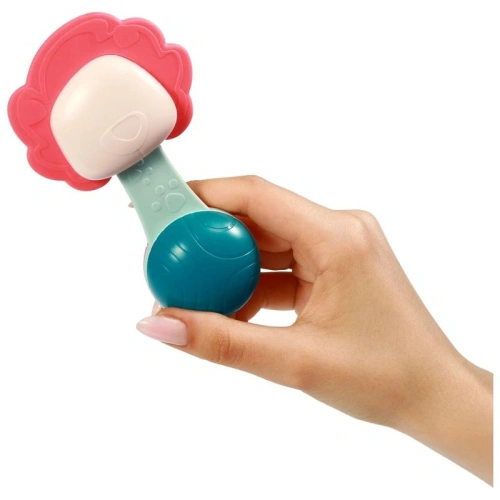 Благодарение на удобната структура на дрънкалката, бебето може лесно да я държи в малките си ръчички