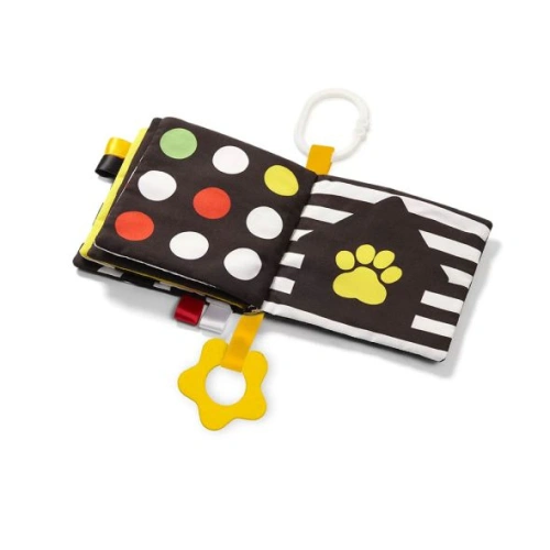 Докато си играе с книжката, детето ще придобие нови умения - от практикуване на захвата, стимулиране на венците с гризалките, до получаване на любопитни слухови преживявания и изучаване на различни текстури. Вграденото огледалце дава възможност на детето да изучава себе си или заобикалящата го среда през различна перспектива.