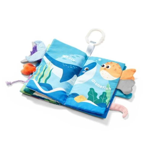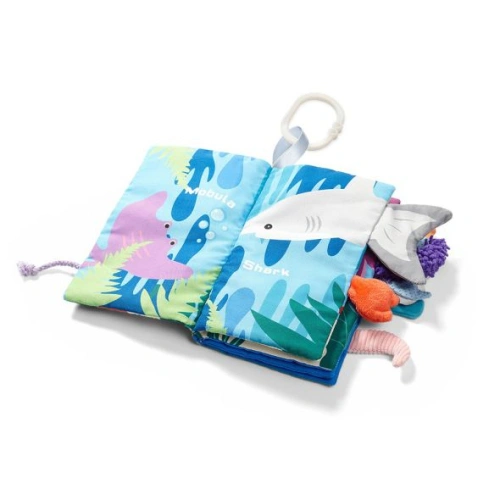 Бебешката образователна книжка Go to the ocean е създадена с мисъл за сензорното развитие на детето. Тя показва подводния свят по интересен и вълнуващ за детето начин. Благодарение на опашките, стърчащи отвъд ръба на книгата, тя позволява на детето да изучава различни текстури и да развива сетивността си.