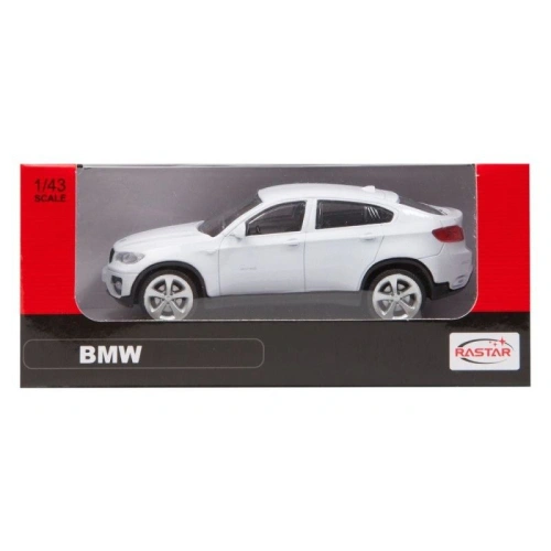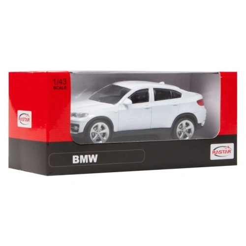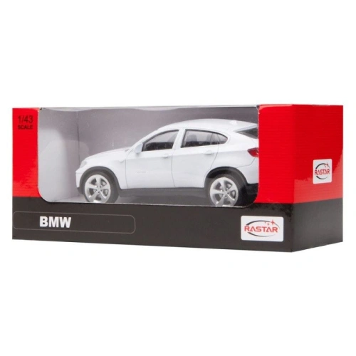 Този детайлен метален модел пресъздава елегантния дизайн на BMW X6 в стилен бял цвят. Изработен с внимание към детайлите и от качествени материали, моделът предлага реалистично усещане и здрава конструкция, подходяща както за игра, така и за колекциониране. Компактният мащаб 1:43 го прави удобен за съхранение, за колекция или за поставяне в детската стая.