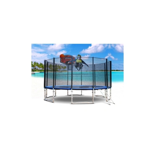 Този комплект е баскетболен кош, специално създаден да се монтира на детски батут — идеален за игри, тренировки по стрелба и забавни състезания на открито.