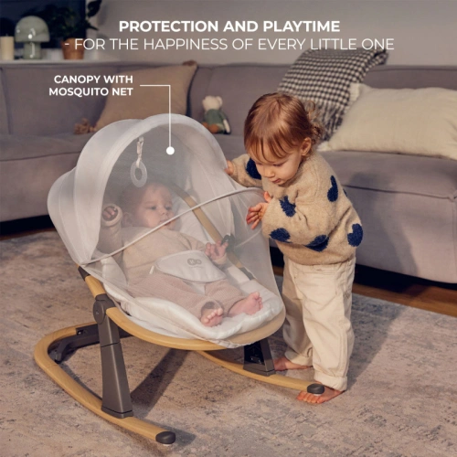 ELSU 2в1 е люлка и шезлонг, съчетаваща естетика и функционалност. Създаден е с мисъл за съвременните родители, които търсят сигурност и комфорт за своето дете и държат на елегантния изчистен дизайн. Леката конструкция ви позволява лесно да го местите из къщата, а сенникът с мрежа против насекоми позволява да оставите спокойно детето в шезлонга на двора. 3 опции за регулиране на облегалката го правят идеален избор за новородени и деца до 9 кг.