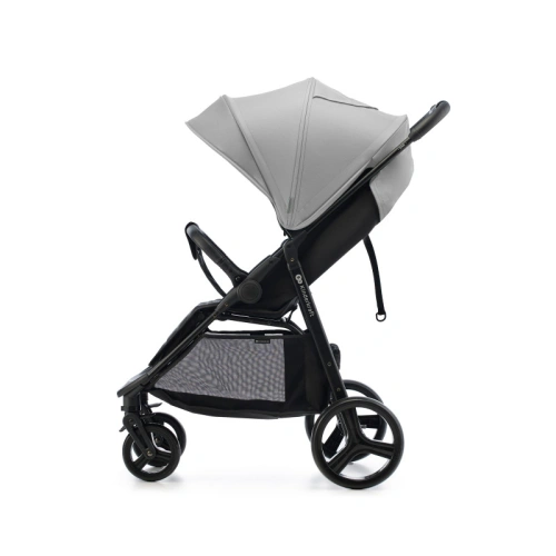 Количката RINE разполага с въртяща се предпазен борд, просторна кошница за багаж и поставка за чаша за родителя.