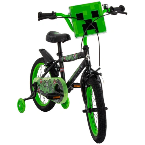 Със със светещи помощни колела за още по-голямо забавление! Този официално лицензиран велосипед се отличава със зашеметяващ черно-зелен пикселизиран дизайн и преден щит с Creeper на кормилото, идеално решение за всеки фен на Minecraft. Колелото е подходящо за деца на възраст от 5 до 7 години(112-127 см или тегло до 27 кг), разполага със здрава стоманена рамка, която ще издържи на всички ежедневни приключения.