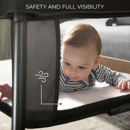 CAMI с функция за кошара има практичен вход отстрани, затварящ се с цип. Пълзящо дете ще може свободно да напуска кошарата, когато пожелае. Освен това, страните на леглото са изработени от ефирна мрежа, осигуряваща добра видимост към бебето, когато играе или спи.