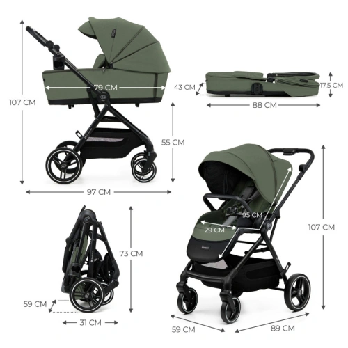 Зелена комбинирана бебешка количка 3в1 Yoxi Mystic Green PAT72406
