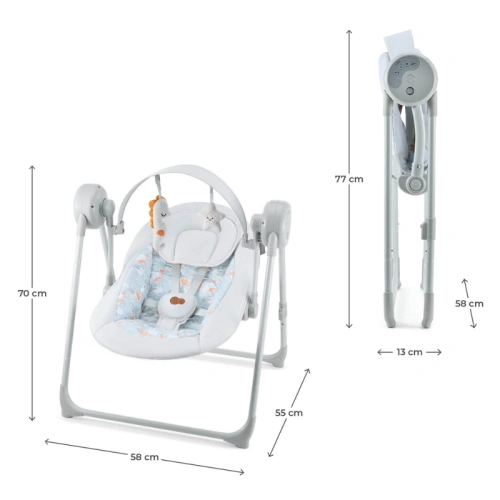 С тегло от само 3,7 кг и проста система за сгъване, SWINGEE е перфектен както у дома, така и на почивка. След като се сгъне, заема изключително малко място, което го прави идеален за съхранение и транспорт – чудесен за активни семейства.