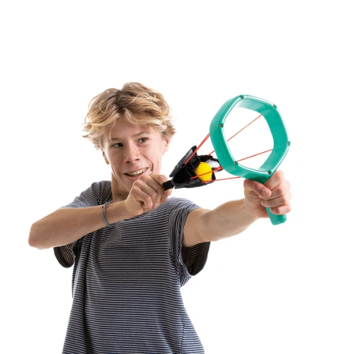 Игра за стрелба и хващане с 2 фунии и 3 топки Игрта е подходяща за по-големи деца и възрастни. Топките са достатъчно твърди, за да наберат скорост, но и достатъчно меки, за да могат да се играят на закрито, ако желаете. С тази игра с прашка можете да изстрелвате топки към опонента си и да хващате топката обратно. Това прави играта безкрайна и вълнуваща. Включената мишена и предложените варианти за игра ще ви вдъхновят за забавление и игра сами или с приятелите ви. Предизвикайте приятелите си за игра Dodgi и се забавлявайте! Играйте по-дълго!