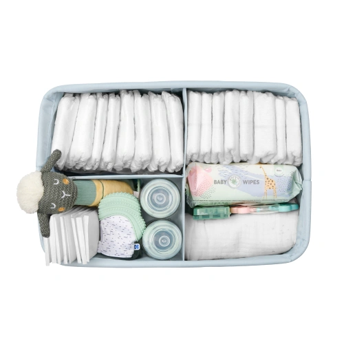 Преносим органайзер за памперси с различни отделения за бебешки принадлежности;